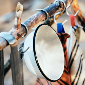 “Cuando diseñé el cuchillo, el spork, el asador y la vajilla, quería que funcionaran perfectamente al aire libre, pero que también se sintieran naturales en casa”, explica. “Materiales duraderos como el hierro fundido y el acero esmaltado garantizan larga vida útil, mientras que los detalles naturales aportan calidez”.